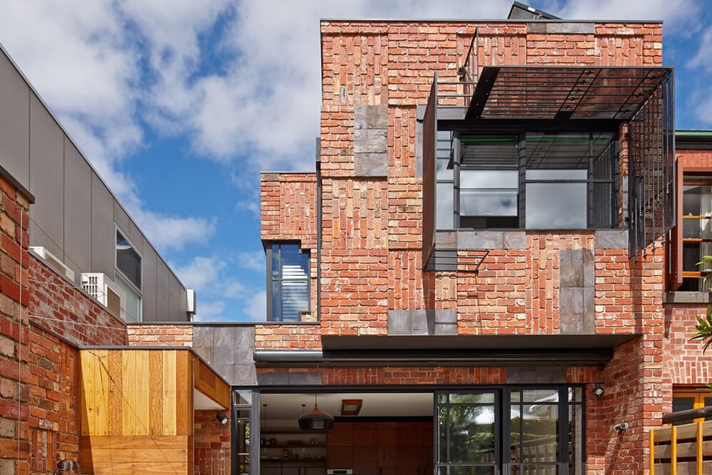 สถาปนิก PHOOEY Architects เปลี่ยนบ้านสองชั้นที่มีอยู่ในยุควิคตอเรียนที่ได้รับการขึ้นทะเบียนเป็นมรดกโลกในเมลเบิร์นให้กลายเป็นบ้านที่ยั่งยืน และเหมาะสำหรับครอบครัว โดยเลือกใช้วัสดุที่หาง่ายอย่างอิฐแดง และไม้ นำมาตกแต่ง และต่อเติมจากส่วนเดิม ให้มีความทันสมัยขึ้น แต่ยังคงความคลาสสิก โดยเน้นสีน้ำตาลที่ทำให้รู้สึกอบอุ่น และเพิ่มลูกเล่นด้วยรูปแบบการก่ออิฐแดงที่หลากหลาย