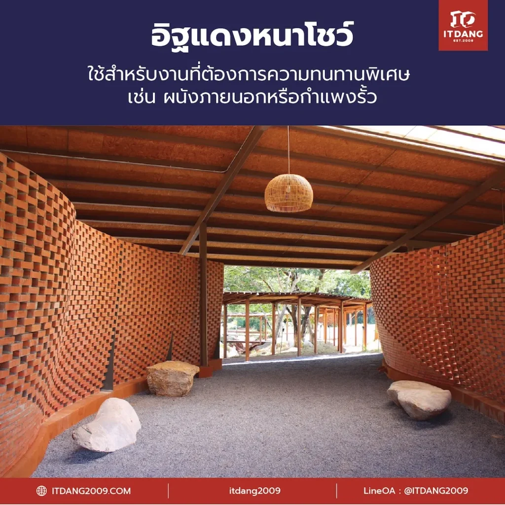 อิฐแดงหนาโชว์ – ใช้สำหรับงานที่ต้องการความทนทานพิเศษ เช่น ผนังภายนอกหรือกำแพงรั้ว